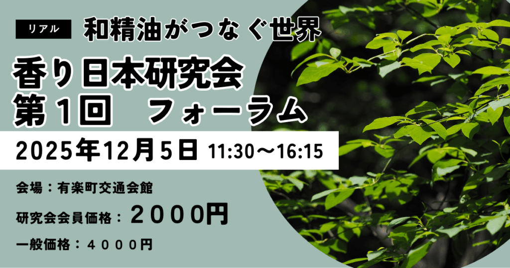香り日本研究会は精油製造の技術やトレンドなどを会員に共有し、会員内外に取り組みを発信していくことで日本の精油製造現場をより活性化させ、販売振興、海外への日本精油の発信を行っていく目的で設立しました。